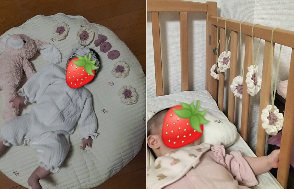 私は「生まれて○○日目」の数字や小さなお花などを編んで、