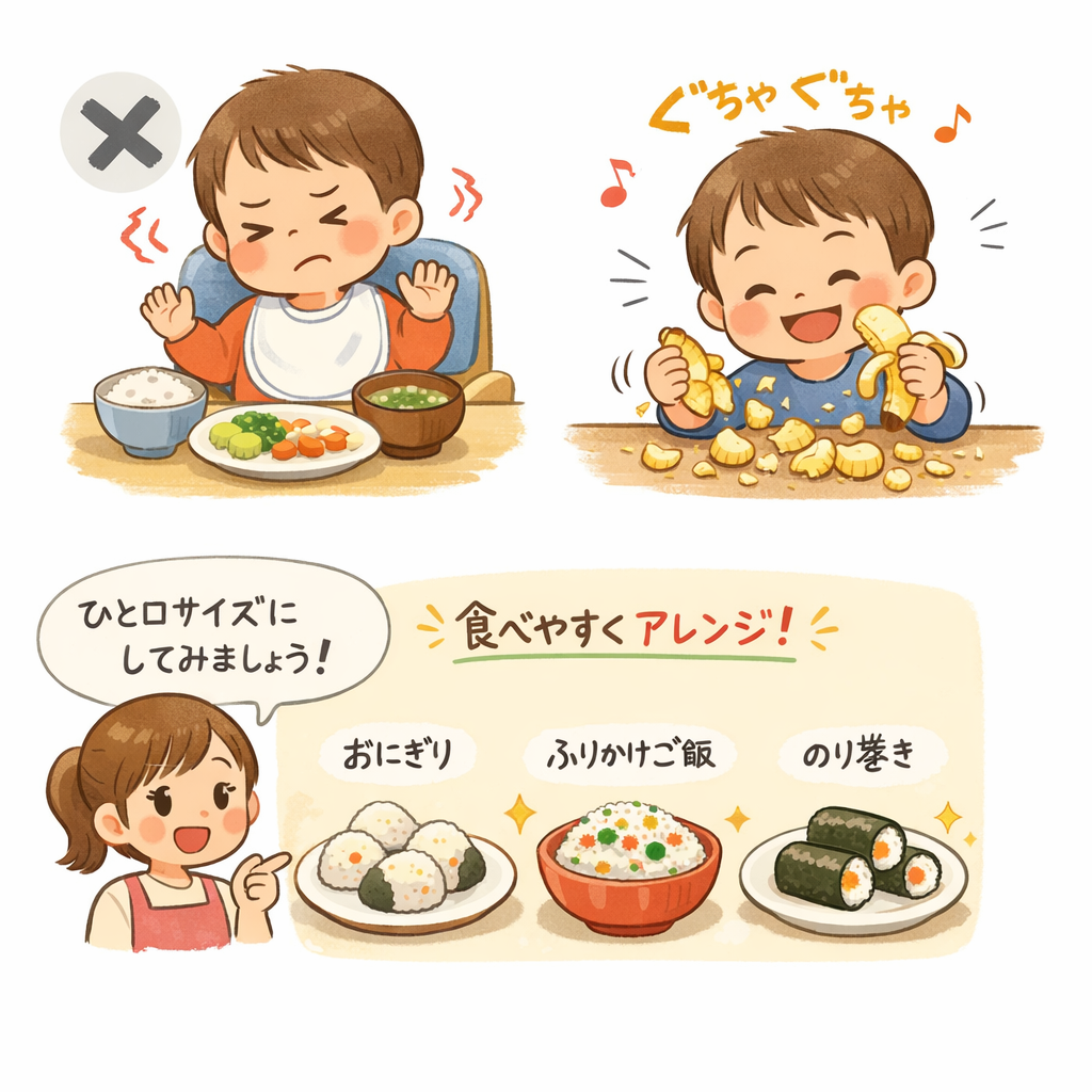 「ご飯を一口サイズにしてみたり、ふりかけご飯にしたり、